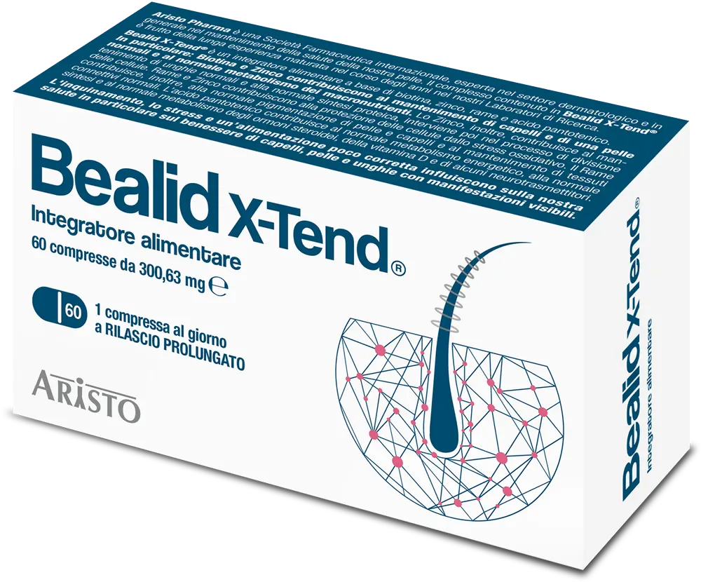 L’azione sinergica dei componenti di Bealid X-Tend® lo rende un coadiuvante nutrizionale in caso di indebolimento dei capelli, caduta stagionale, fragilità ungueale, terapia di mantenimento in seguito a trattamento farmacologico per alopecia, dermatosi infiammatorie.
